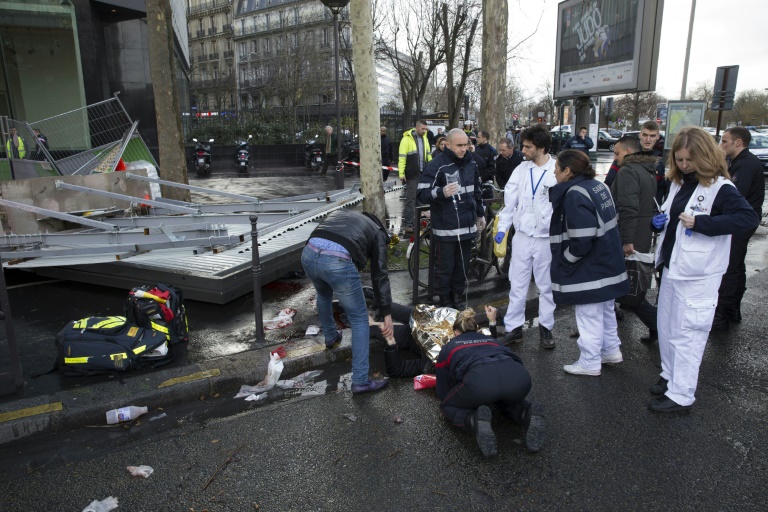 A Paris, une des deux personnes blessées lundi par la chute d'un panneau publicitaire Porte Maillot, une femme, se trouvait toujours dans le coma mardi midi et son pronostic vital restait engagé.