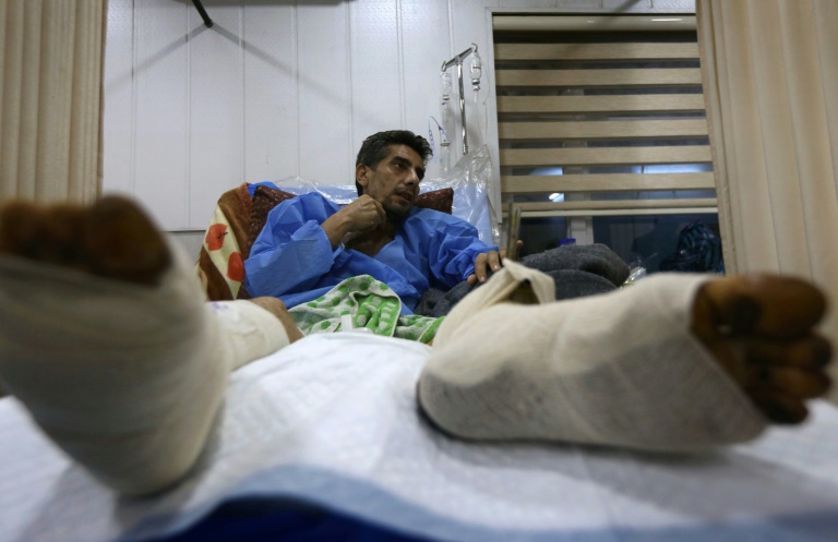 Ses jambes enserrées dans des bandages et parcourues de broches métalliques, il raconte l'horreur au quotidien dans Mossoul, le fief du groupe Etat islamique (EI) aujourd'hui attaqué par les forces irakiennes qui en ont repris plusieurs quartiers à l'est du fleuve Tigre.