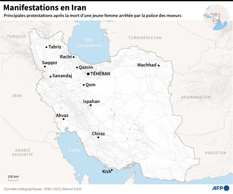 Les protestations ont été déclenchées le 16 septembre, le jour du décès de Mahsa Amini arrêtée le 13 septembre à Téhéran pour "port inapproprié des vêtements" dans la République islamique où le code vestimentaire pour les femmes est strict.