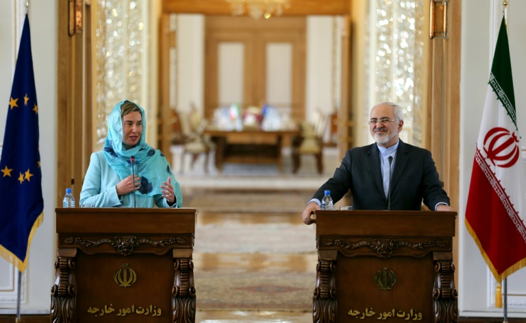 L'application de l'accord nucléaire entre l'Iran et les grandes puissances fait face à "des défis" et "obstacles" que l'Union européenne (UE) et Téhéran veulent surmonter ensemble, ont affirmé samedi les chefs des diplomaties européenne et iranienne.