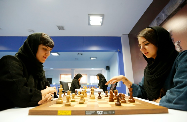 Tête recouverte de leur hijab, installées autour d'un échiquier d'une salle de la Fédération d'échecs à Téhéran, deux de ces joueuses, Mitra Hejazipour, 23 ans, et Sara Khademalsharieh, 19 ans, très à l'aise, expliquent en anglais à l'AFP pourquoi ce championnat, le premier à se tenir en Iran, est si important pour elles.