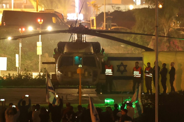 A Tel-Aviv, des visages souriants d'otages libérés étaient projetés vendredi soir sur la façade du musée d'Art, avec les mots: "Je suis de retour à la maison". Et près d'un hôpital de Petah Tikva, dans la banlieue de Tel-Aviv, des personnes ont applaudi et brandi des drapeaux israéliens à l'approche des deux hélicoptères transportant des otages libérés.