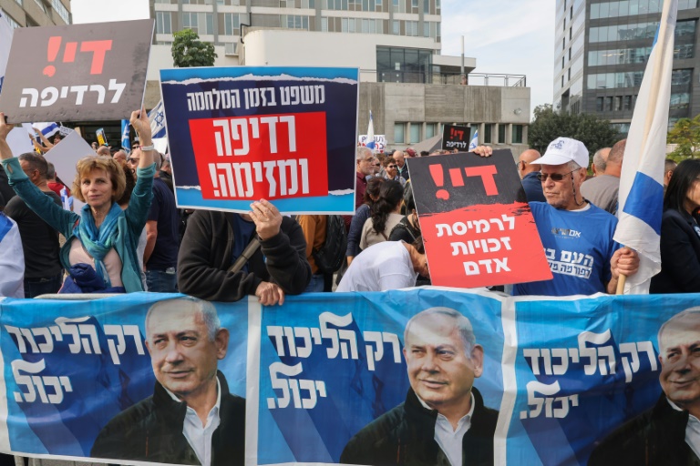 Des opposants à M. Netanyahu et des partisans du Premier ministre se sont rassemblés mardi devant le bâtiment du tribunal, tandis que des députés de la coalition gouvernementale de droite sont venus assister à l'audience qui se déroule dans une salle souterraine pour des raisons de sécurité.