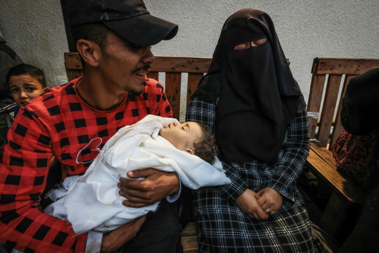 A l'extrême sud, Rafah, la ville frontalière avec l'Egypte, est devenue un gigantesque camp, fait de centaines de tentes bricolées à l'aide de bouts de bois, de draps et de bâches en plastique, où les déplacés s'abritent tant bien que mal sous la pluie, alors que l'hiver et le froid s'installent.