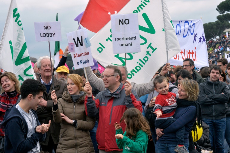 L'Eglise catholique, omniprésente en Italie, a pris plusieurs fois position pour rappeler le caractère central de la famille, comprise comme l'union entre un homme et une femme, mais sans appeler directement à manifester samedi.
