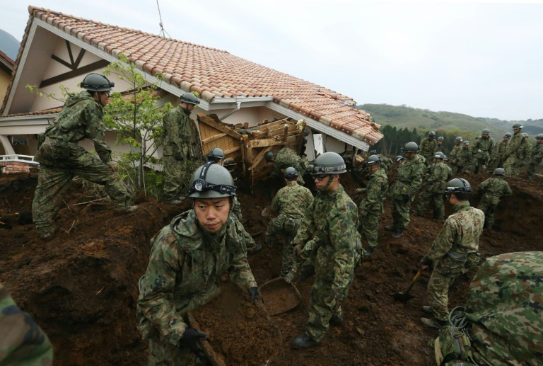 Les secours intensifiaient lundi leurs efforts dans un dernier espoir de trouver des survivants dans le village de Minami-Aso, traversé par un glissement de terrain après les séismes qui ont frappé le sud-ouest du Japon ces derniers jours.