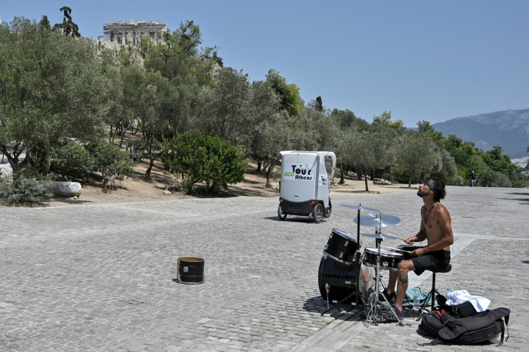 Au coeur d'Athènes, les passants rasent les murs à la recherche d'ombre et de l'air climatisé qui s'échappe des commerces. Les terrasses des cafés servent d'oasis où brumisateurs et ventilateurs tournent à plein régime. "On n'était pas vraiment préparés", confesse Nicolas Deshayes. "On est partis ce matin de Paris où il faisait 15 degrés... Mais on boit et on passe dans les rues à l'ombre", explique le Français de 41 ans.