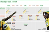 Trois médailles d'or à Pékin, trois à Londres, trois à Rio: et de neuf pour Usain Bolt ! Le Jamaïcain a conclu son invraisemblable triple triplé vendredi, alors que les Bleus sont assurés d'égaler au moins leur record de Pékin (41 médailles).