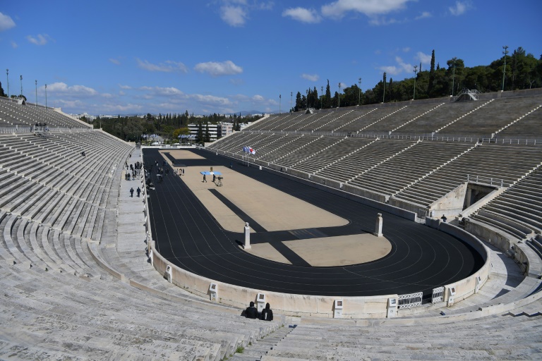 En l'absence de spectateurs, seule une poignée de journalistes avait été autorisée à couvrir la cérémonie traditionnelle dans le majestueux stade où s'étaient tenus les premiers Jeux en 1896. Le champion olympique de gymnastique Lefteris Petrounias a couru avec la flamme dans le stade de marbre où sa compatriote Katerina Stefanidi, championne olympique de saut à la perche, a allumé un chaudron, conformément à la tradition.