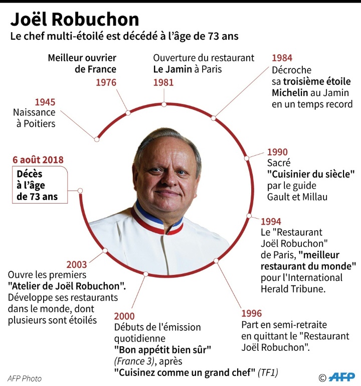 Détenteur du record absolu d'étoiles Michelin, le "pape des cuisiniers" Joël Robuchon, décédé lundi à 73 ans, était à la tête d'un empire de la gastronomie française, dont il était le plus grand ambassadeur.