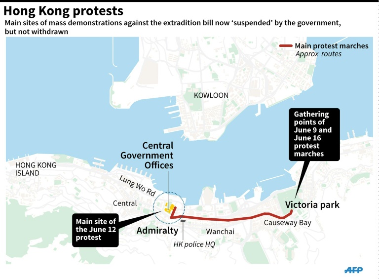 En ébullition depuis plusieurs mois du fait de ce projet de loi, l'ex-colonie britannique a été le théâtre ces deux derniers dimanches de deux manifestations d'une ampleur record, et d'un rassemblement non autorisé mercredi qui a entraîné la plus violente répression policière depuis la rétrocession en 1997.