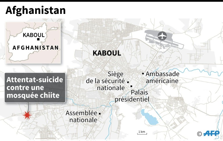Devant la mosquée chiite de l'ouest de Kaboul dévastée vendredi soir par un attentat du groupe jihadiste Etat islamique qui a provoqué la mort d'au moins 56 fidèles en prière, les habitants et les proches viennent aux nouvelles samedi et une nouvelle fois condamnent l?impéritie du gouvernement afghan.
