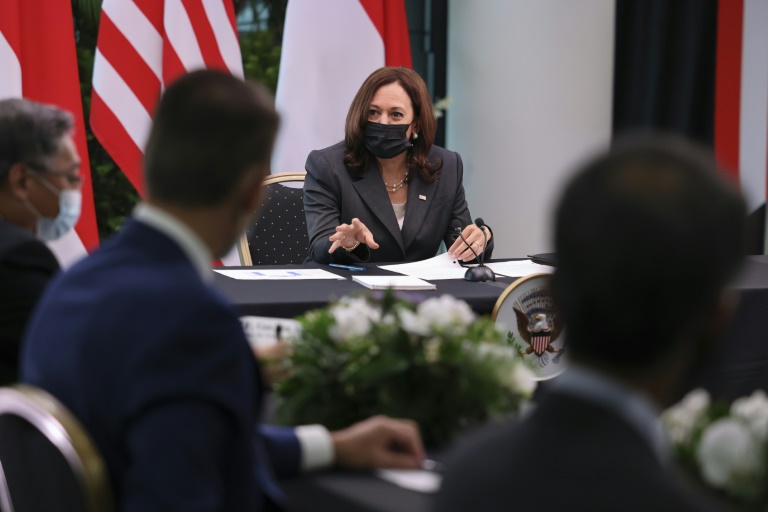 Mme Harris a aussi voulu apaiser les craintes que les tensions croissantes entre la Chine et les Etats-Unis ne contraignent les pays étroitement liés à ces deux puissances économiques à devoir choisir leur camp. "Notre engagement en Asie du Sud-Est et dans la région indo-Pacifique n'est pas dirigé contre un pays quel qu'il soit et ne vise pas à forcer quiconque à choisir entre les pays", a-t-elle affirmé.