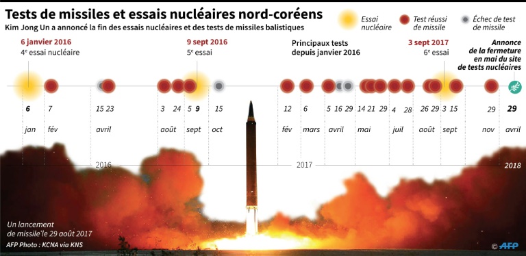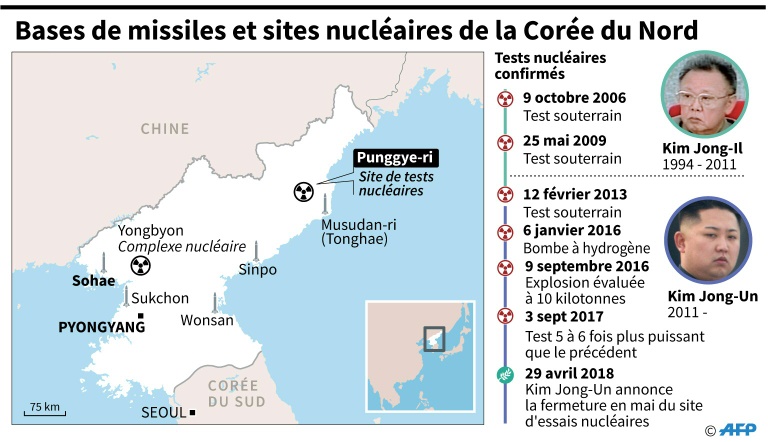 La Corée du Nord s'apprête à démanteler fin mai son site d'essais atomiques, a annoncé samedi l'agence d'Etat KCNA, un nouveau geste de Pyongyang avant le sommet historique entre son dirigeant Kim Yong Un et le président américain Donald Trump le 12 juin à Singapour.
