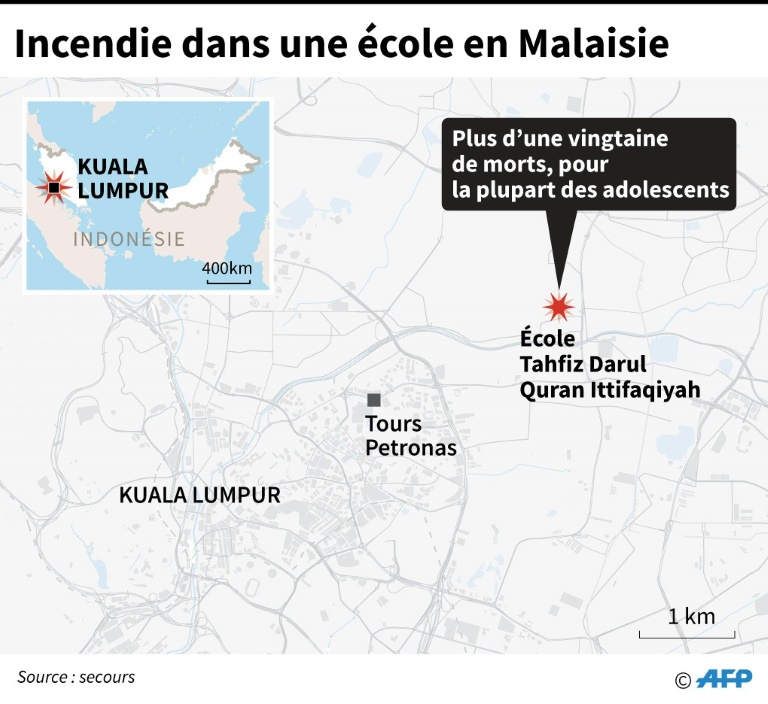 Vingt-quatre personnes, pour la plupart des adolescents, ont péri dans un incendie jeudi dans une école religieuse à Kuala Lumpur, l'un des pires de ces dernières années en Malaisie, ont indiqué des responsables locaux.
