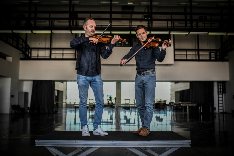 À Bastille, le violoniste Marin Lamacque, 24 ans et originaire de la région parisienne, répète une partition difficile de l'opéra "Simon Boccanegra" de Verdi, à l'affiche. Son tuteur Thibault Vieux lui dit tantôt de jouer plus long ou plus accentué.