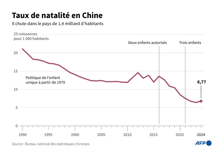 La somme de 1.500 yuans (197 euros) que le couple a reçue s'inscrit dans le cadre des efforts du gouvernement pour stimuler la natalité, avec la population chinoise qui a chuté pour la troisième année consécutive en 2024.