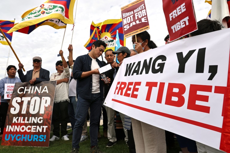 Des manifestants se sont rassemblés sur les pelouses du Parlement australien pendant la rencontre, accusant la Chine de violations des droits de l'Homme.