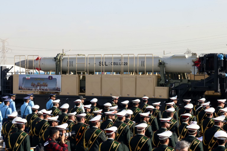 L'Iran a dévoilé samedi un nouveau missile balistique et un drone d'attaque à sens unique lors d'un défilé militaire, selon les médias d'Etat, dans un contexte de tensions régionales croissantes et d'allégations d'armement de la Russie.