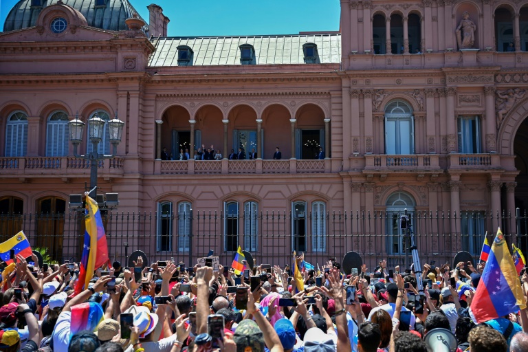 Des groupes de Vénézuéliens se sont rendus sur la célèbre Plaza de Mayo, en face de la Casa Rosada, le palais présidentiel argentin. D'un balcon, l'opposant a salué la foule aux cotés de son homologue.