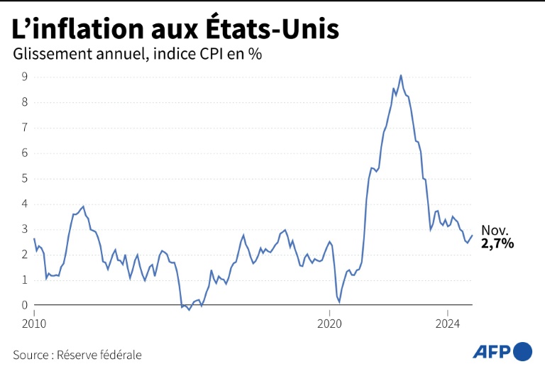 Aux États-Unis, l'inflation s'est accélérée en novembre, à 2,7% en rythme annuel, alimentant les craintes de voir la courbe rester sur cette trajectoire. De quoi compliquer la tâche de la Banque centrale américaine (Fed) qui se réunit la semaine prochaine.