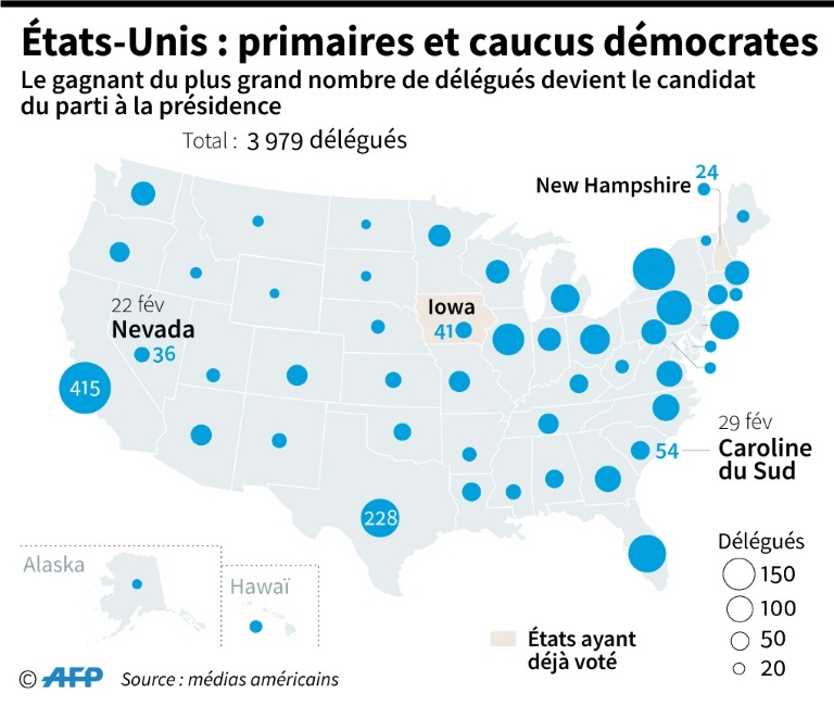De son côté, le milliardaire Michael Bloomberg fait l'impasse sur les premiers Etats pour entrer en lice lors du "Super Tuesday" le 3 mars, lorsque 14 Etats voteront.