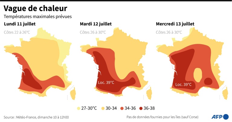 La vague de chaleur se propagera ensuite vers le Centre, l'Est puis le Nord, avant de "marquer une baisse légère et temporaire sur le nord du pays jeudi et vendredi", puis d'affecter à nouveau tout le territoire métropolitain.