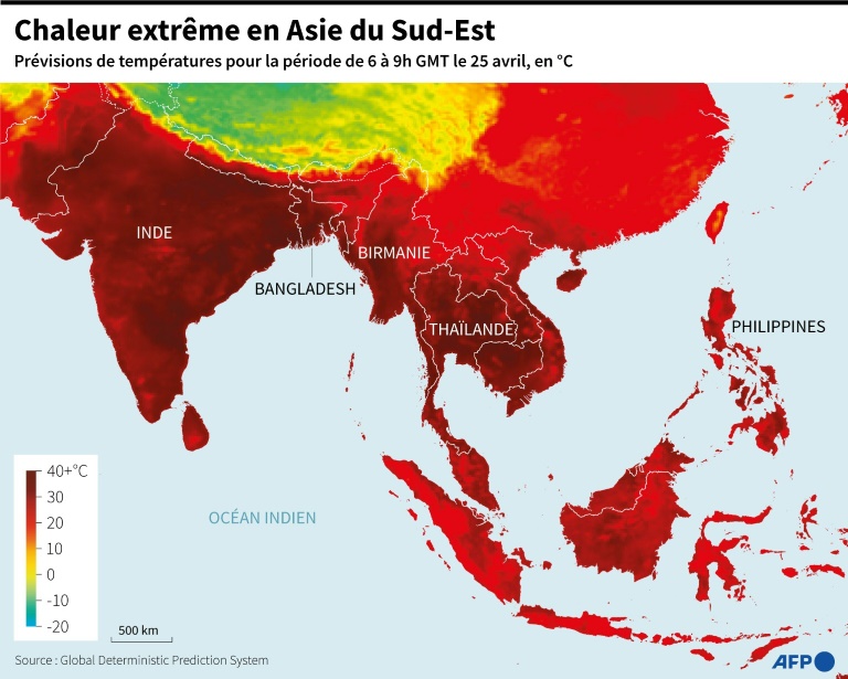 Classe à distance aux Philippines, parcs bondés en Birmanie, alerte aux fortes chaleurs au Bangladesh: l'Asie du Sud-Est continue dimanche à transpirer sous des températures anormalement élevées, avec des pointes à plus de 45°C.