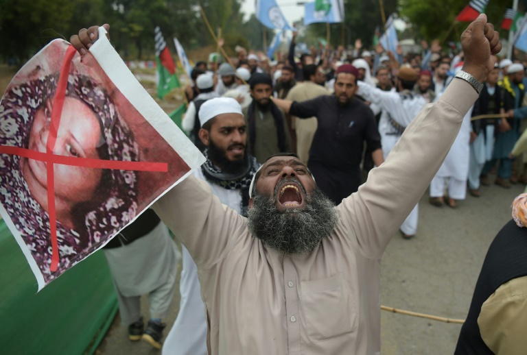 Après son acquittement, des milliers d'islamistes avaient bloqué trois jours durant les principaux axes du pays pour exiger sa pendaison, le blasphème étant une question incendiaire au Pakistan.