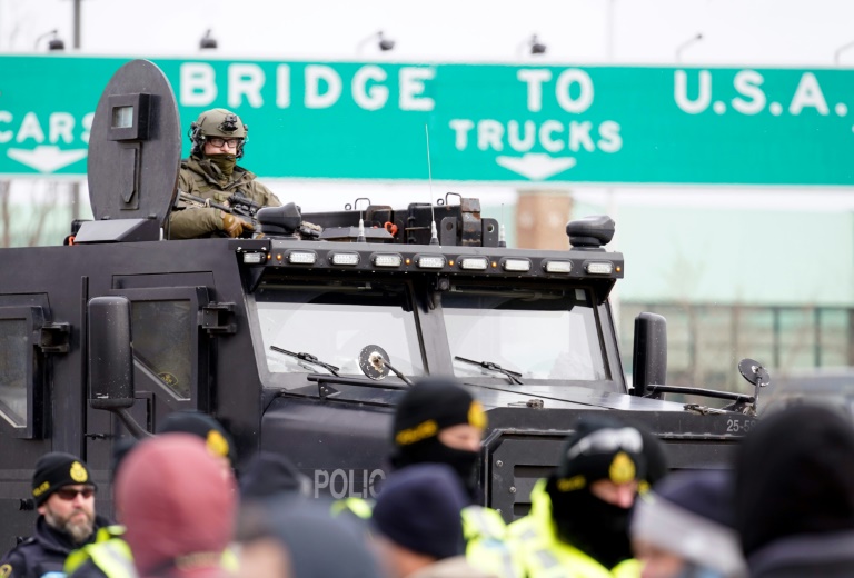 Pour la première fois depuis le début du mouvement, la police a pris position en nombre aux abords de l'un des points chauds de la contestation: le pont Ambassador, qui relie Windsor en Ontario à la ville américaine de Détroit. La veille, la Cour supérieure de l'Ontario avait ordonné le départ des manifestants installés depuis cinq jours.