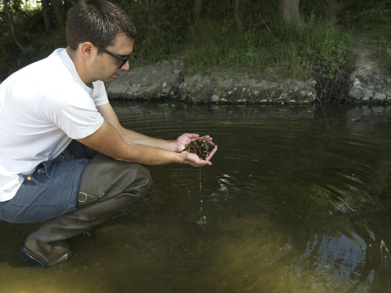 Le chargé de mission de la fédération de pêche d'Indre-et-Loire en tire une poignée de gravier. Très vite, il élimine le sable pour ne garder que cinq ou six petits coquillages de couleur jaune crème.
