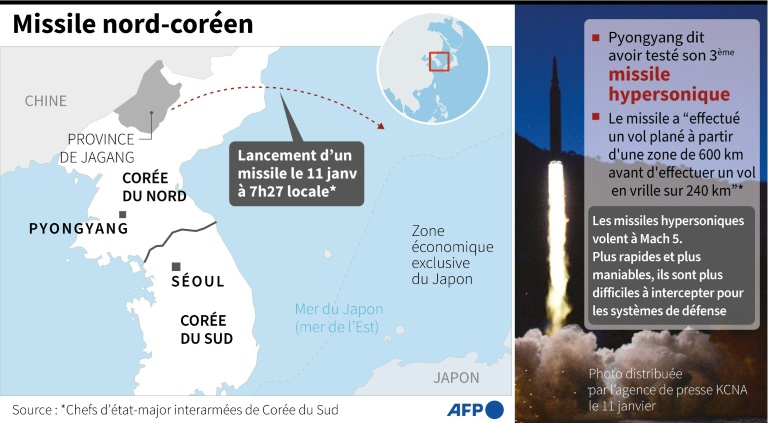 La Corée du Nord a notamment affirmé avoir testé avec succès les 5 et 11 janvier des missiles hypersoniques à vol plané, une arme particulièrement sophistiquée, le deuxième lancement étant supervisé par Kim Jong Un en personne.