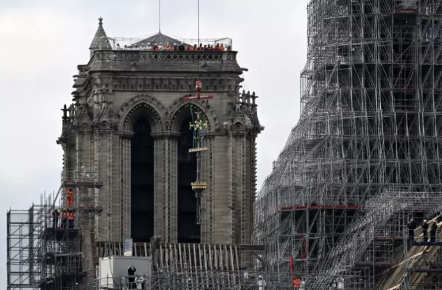 La cathédrale Notre-Dame de Paris a retrouvé sa croix, apposée au sommet de sa flèche, mercredi, ont constaté des journalistes de l'AFP présents à proximité du bâtiment ravagé par un incendie en 2019.