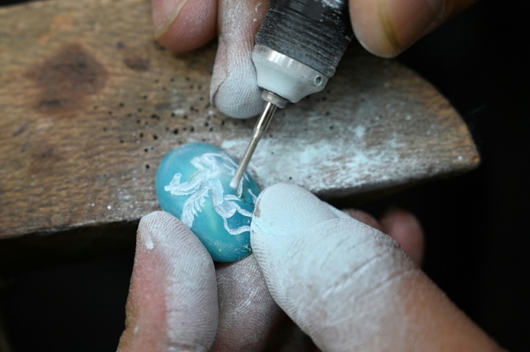 "Autrefois, des commerçants turcs importaient des pierres gravées de pays voisins, mais maintenant, je les fais ici et je prends des commandes", explique M. Ekhlas à l'AFP.