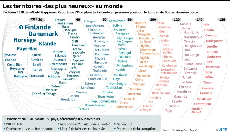 La Finlande a été désignée pays de plus heureux du monde par l'ONU d'après une méthodologie consistant à demander à un échantillon de personnes venant de 156 pays différents leur perception de leur qualité de vie. M. Honkala et sept compatriotes ont du coup été embauchés par l'office national du tourisme comme "guides du bonheur" pour les visiteurs étrangers.