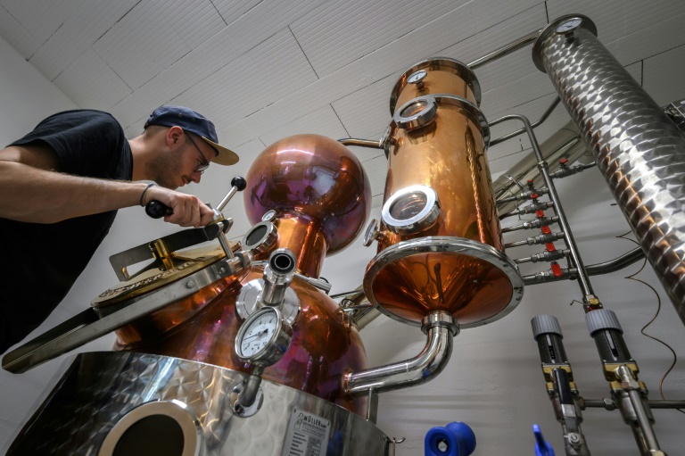 Au rez-de-chaussée d'une ancienne ferme, une odeur d'épices - mélange de coriandre et de baies de genévrier - flotte en l'air, tandis qu'une chaleur enveloppe le visiteur à l'approche d'un alambic en cuivre haut de 2m50 dans lequel l'aîné, Gaëtan, dit "Gagy", 30 ans, distille un gin au feu de bois. "Le lieu de production est notre lieu de vie depuis qu'on est tout petits. On a vraiment des racines ancrées dans notre village", explique auprès de l'AFP cet agronome de formation ayant étudié à Genève.