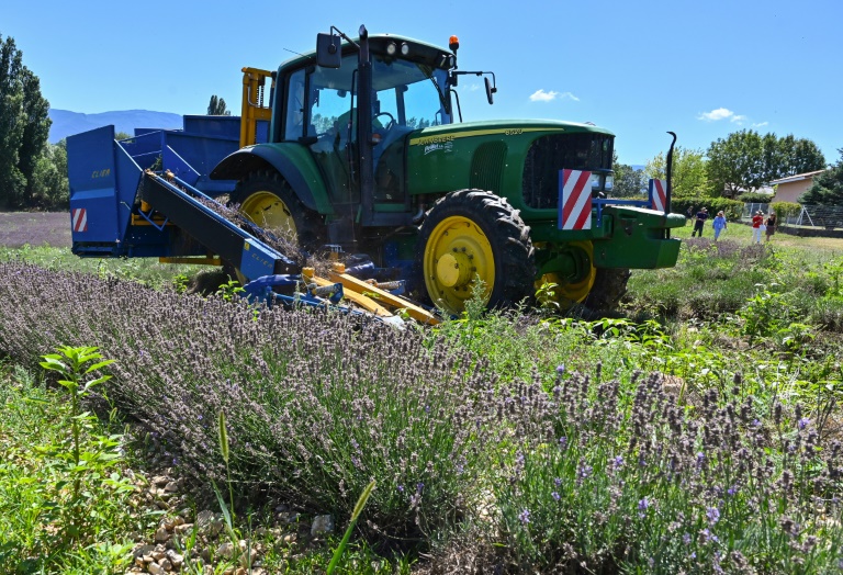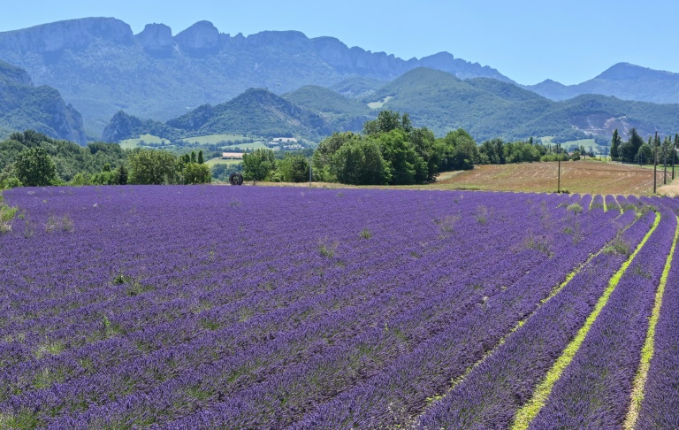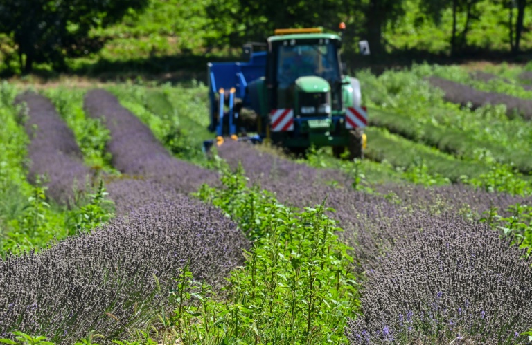Arpentant des champs gris-bleu dans la Drôme, un tracteur armé d'une pince de crabe récolte les bottes de lavande: autant de réservoirs à huile essentielle et le rêve d'une prospérité retrouvée pour des centaines de paysans français.