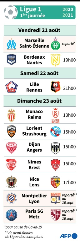 Loin de ses porte-étendards parisien et lyonnais qui brillent à Lisbonne, la Ligue 1 reprend vendredi après cinq mois d'arrêt qui n'ont pas évacué la menace Covid-19 pour des clubs à peine revigorés par un contrat de diffusion record.