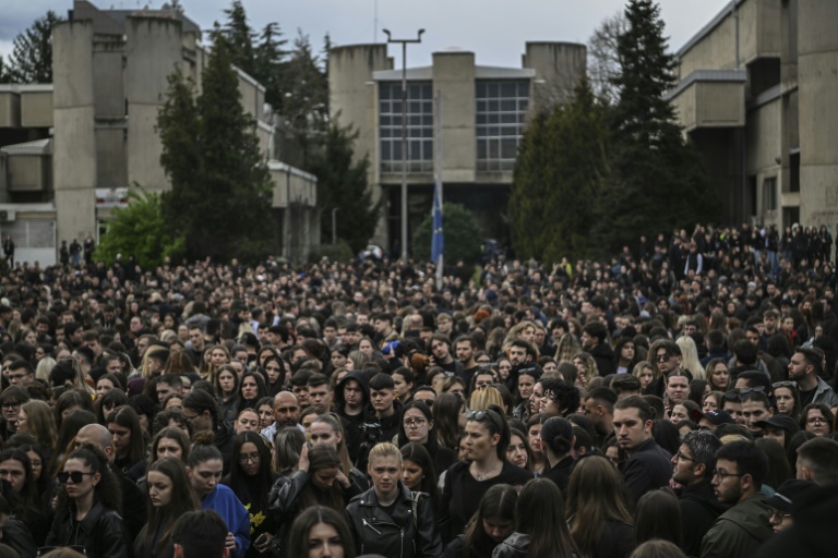 Pendant qu'il parlait, des centaines d'étudiants se sont réunis sous une pluie battante à l'université de Skopje pour déposer des fleurs ou tenter d'allumer des bougies, avant d'appeler à sept minutes de silence. Les autorités ont décrété dimanche un deuil national de sept jours.