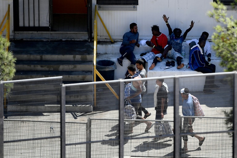 A quelques centaines de mètres de la mairie, au bout d'une route isolée, un grillage surmonté de barbelés et caméras vient rappeler une autre réalité de l'île: les arrivées massives de migrants depuis les côtes d'Afrique du Nord, situées à une centaine de kilomètres.