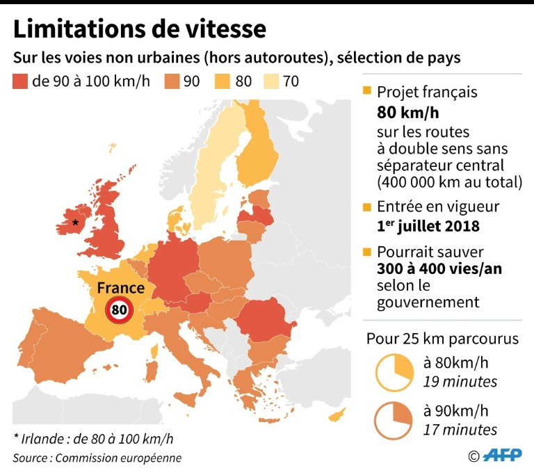La décision de réduire la vitesse à 80 km/h au lieu de 90 km/h, sur 400.000 kilomètres de routes secondaires à double sens et sans séparateur central a déjà suscité de nombreuses indignations d'élus locaux.