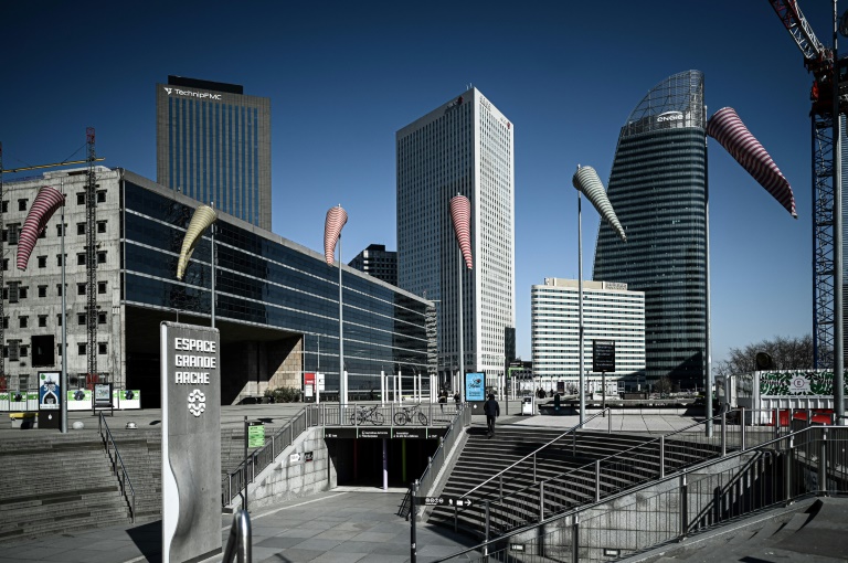 Depuis le début du confinement, les quartiers d'affaires se sont vidés, laissant une impression de fin du monde comme à Canary Wharf à l'est de Londres, ou à La Défense dans la banlieue ouest parisienne.
