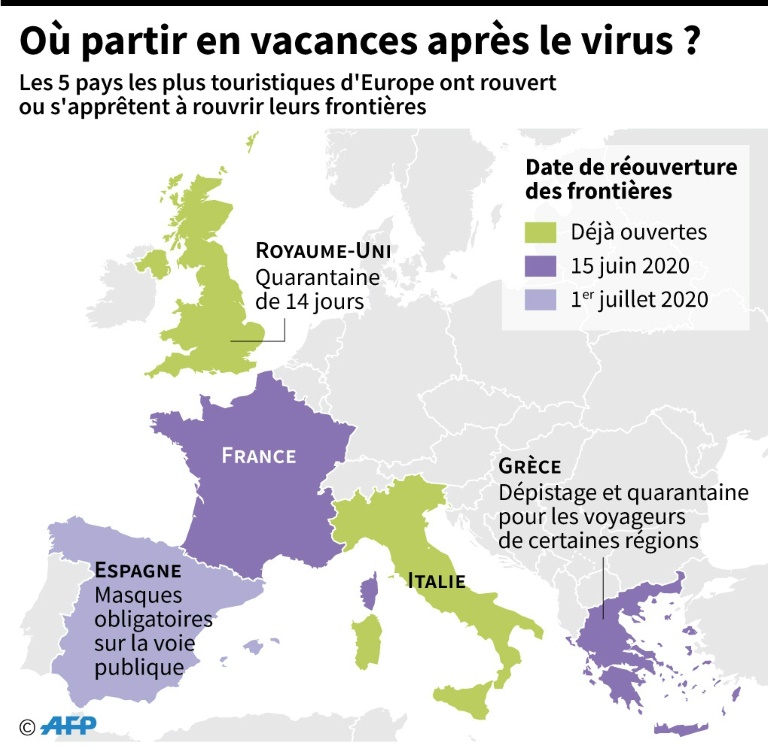 Signe des difficultés des professionnels, le groupe de voyages en car Specialist Leisure a fait faillite fin mai avec 2.500 emplois menacés. Selon une enquête, "la majorité des gens qui ont prévu des vacances dans le pays en juillet et en août pense qu'il est peu probable qu'elles aient lieu", du fait du lent déconfinement qui ne verra les pubs et restaurants rouvrir qu'en juillet, selon Patricia Yates, sa directrice.