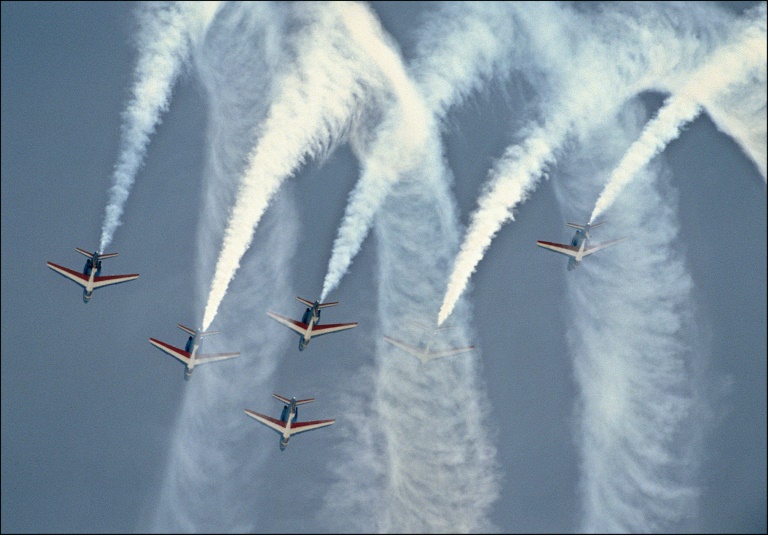 Les avions de la PAF volaient par exemple si bas, lors de leur premier vol avec des fumigènes tricolores en 1958, que les casquettes blanches des officiers assistant au meeting étaient mouchetées de paillettes après leur démonstration, se rappelle le leader d'alors, Bernard Capillon, dans Fana de l'aviation.