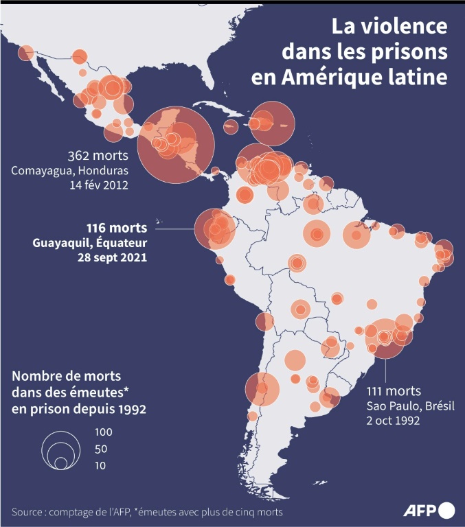Ces violences entre gangs de narcotrafiquants rivaux liés aux redoutables cartels mexicains de Sinaloa et Jalisco Nueva Generacion portent à 236 le nombre de détenus tués depuis le début de l'année. En février, 79 prisonniers ont été tués lors d'émeutes simultanées dans quatre prisons de trois villes, dont Guayaquil. En 2020, le bilan a été de 103 morts. "En Amérique latine, nous sommes malheureusement devenus le pays qui a connu le plus grand massacre de prisonniers ces dernières années, plus que le Brésil et le Venezuela", a déclaré à l'AFP Freddy Rivera, expert équatorien en sécurité et en trafic de drogue.