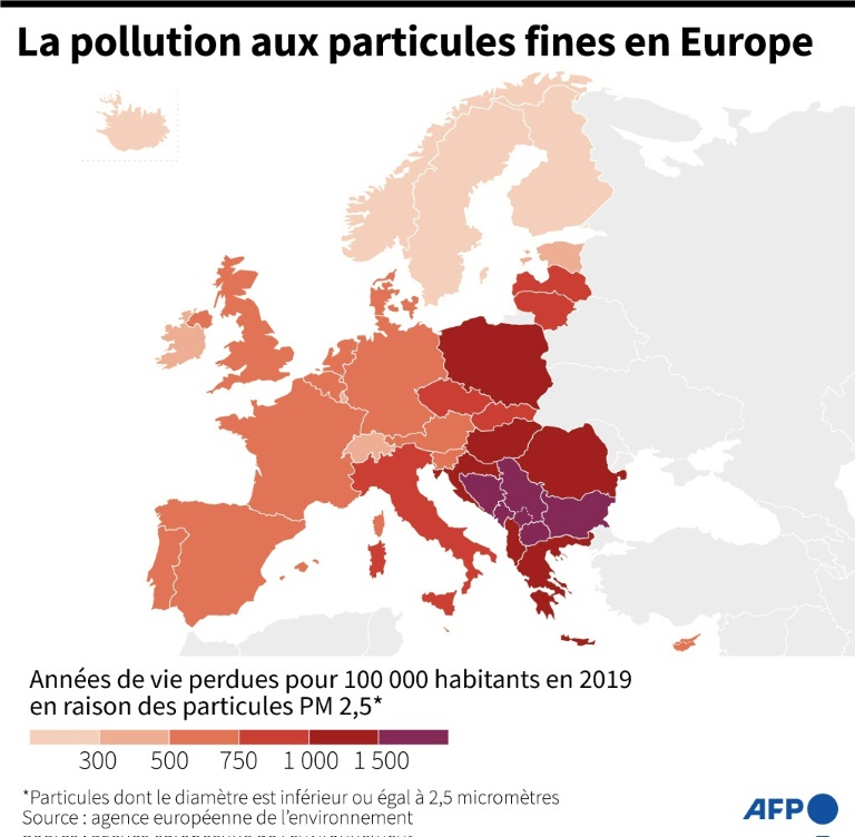 Parmi les principaux pays de l'UE, la pollution aux particules fines a été responsable en 2019 de 53.800 décès prématurés en Allemagne, 49.900 en Italie, 29.800 en France et 23.300 en Espagne, selon l'EAA. Avec 39.300 morts, la Pologne est le pays le plus touché relativement à sa population.