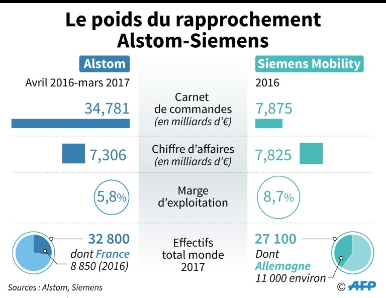 Alstom et Siemens ont justifié mercredi la fusion de leurs activités ferroviaires par la montée en puissance d'une forte concurrence chinoise mais la prise de contrôle de ce fleuron industriel français par le groupe allemand suscite en France critiques et craintes sur l'emploi.
