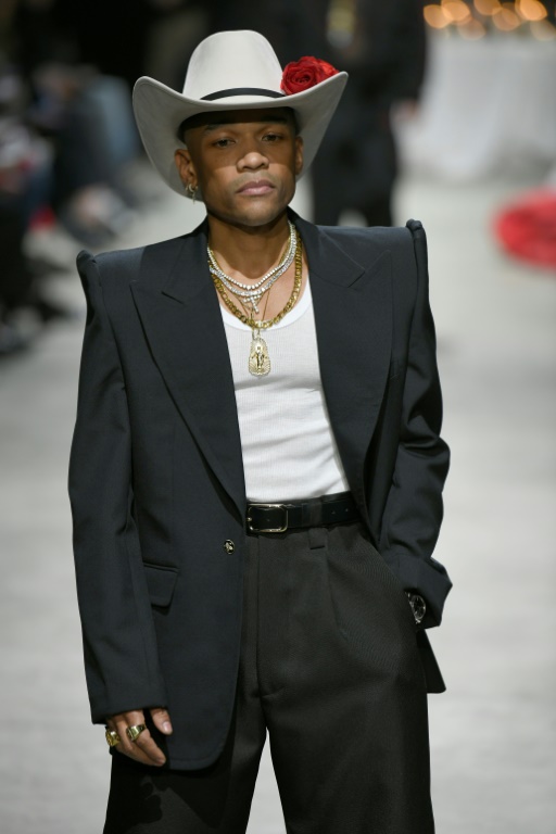 Fraîchement auréolé du prix du meilleur créateur homme 2023 du syndicat de la mode américaine (CFDA), Willy Chavarria a assuré un ambitieux spectacle vendredi soir dans un décor industriel, toujours dans Williamsburg. Dans ce lieu sombre, éclairé aux bougies, le défilé intitulé "Safe from harm" ("A l'abri du danger") a été précédé d'un court-métrage sur grand écran, un film muet mais plein de tension, caméra au plus près de personnages aux corps tatoués et rugueux mais qui se protègent les uns et autres. Parmi les acteurs figuraient le chanteur italien Mahmood et le modèle et militant pour les droits des transgenres Kai-Isaiah Jamal.