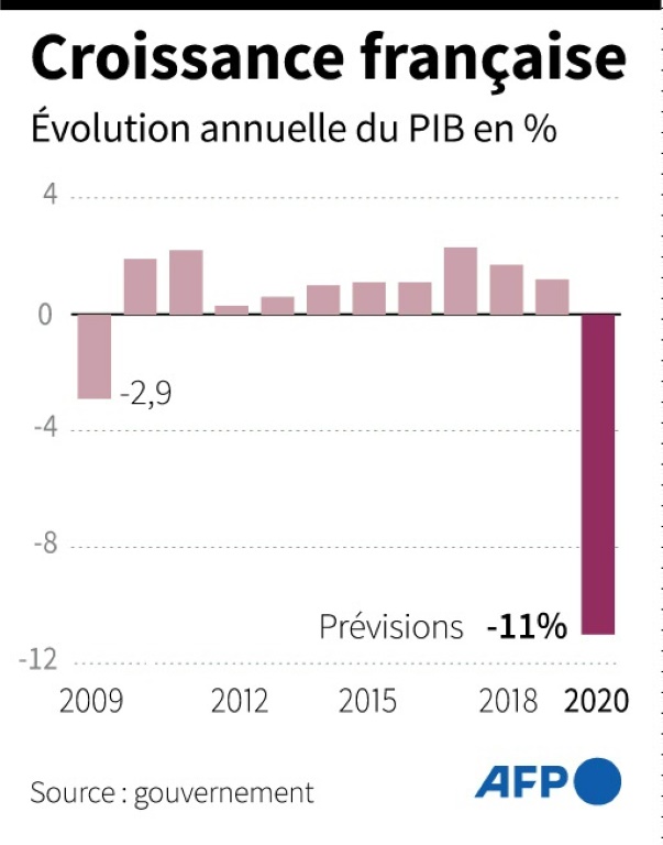 Le produit intérieur brut (PIB) devrait se contracter de 11% a indiqué vendredi le ministre de l'Economie Bruno Le Maire, alors qu'il prévoyait une baisse, déjà importante, de 10% jusqu'ici.