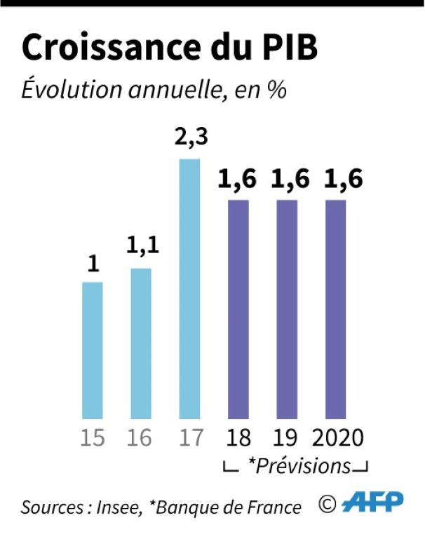 Selon Bercy, la hausse du produit intérieur brut devrait atteindre 1,7% en 2019, au lieu des 1,9% initialement attendus. Le ralentissement pourrait même être plus marqué que prévu si l'on en croit la Banque de France, qui parie elle sur 1,6%.